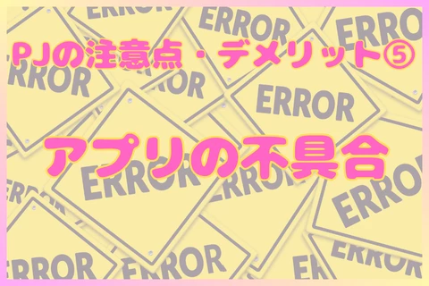 PJのアプリでは、たまに使っている途中で急にフリーズしてしまったり、アプリが落ちてしまうなどの不具合が起きています。